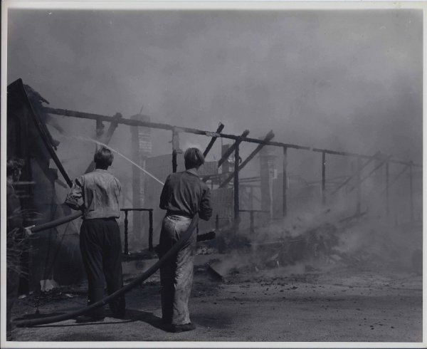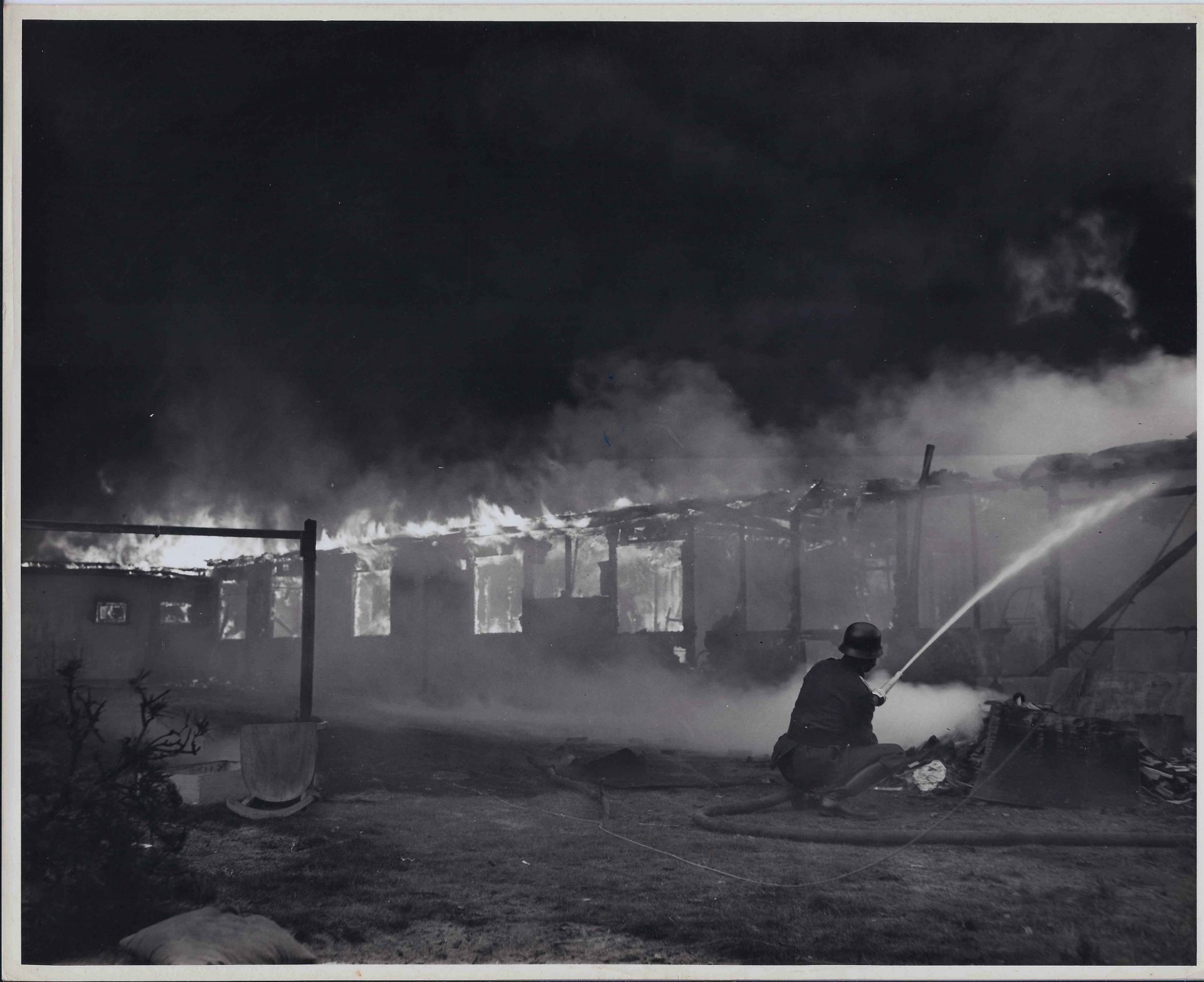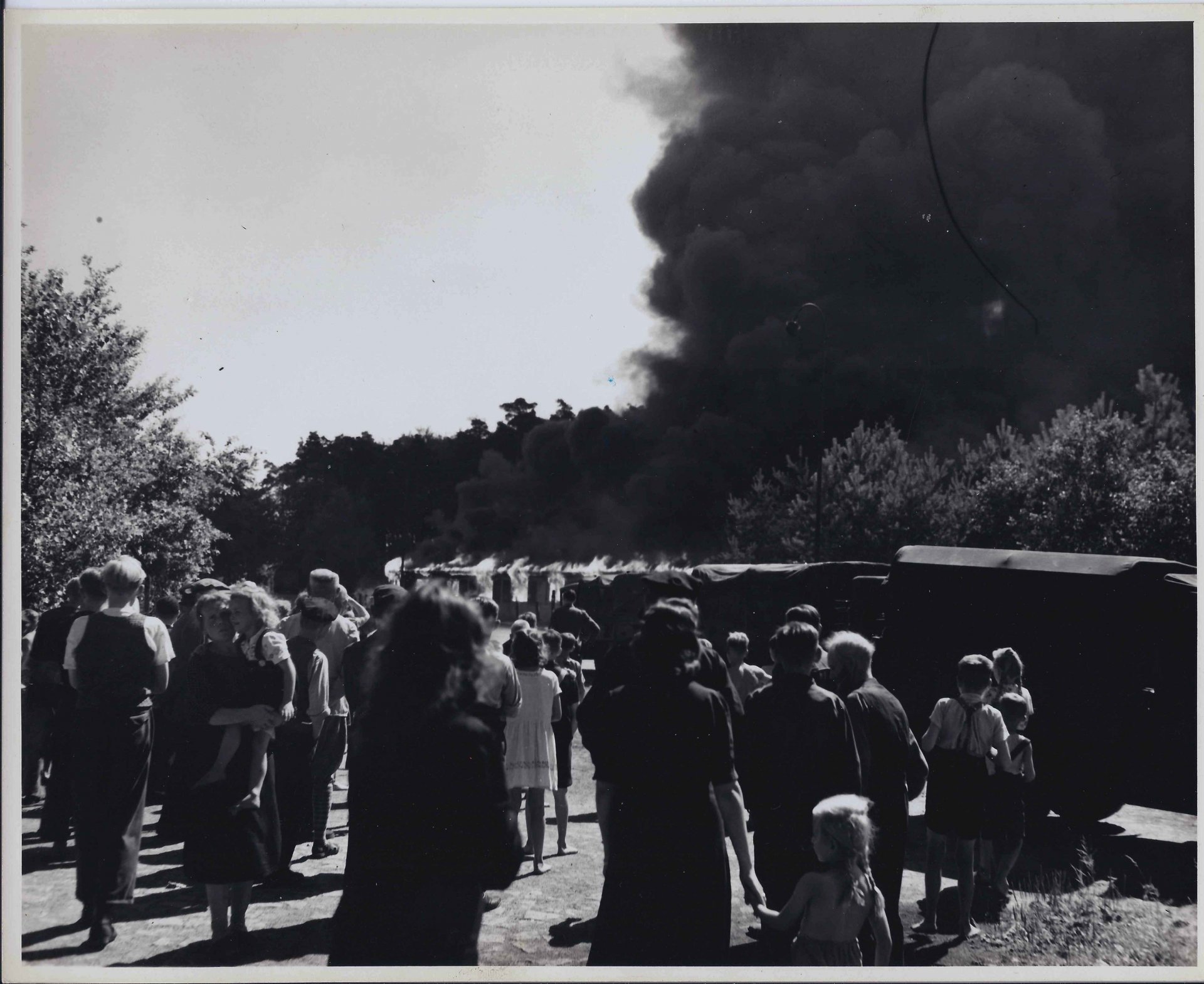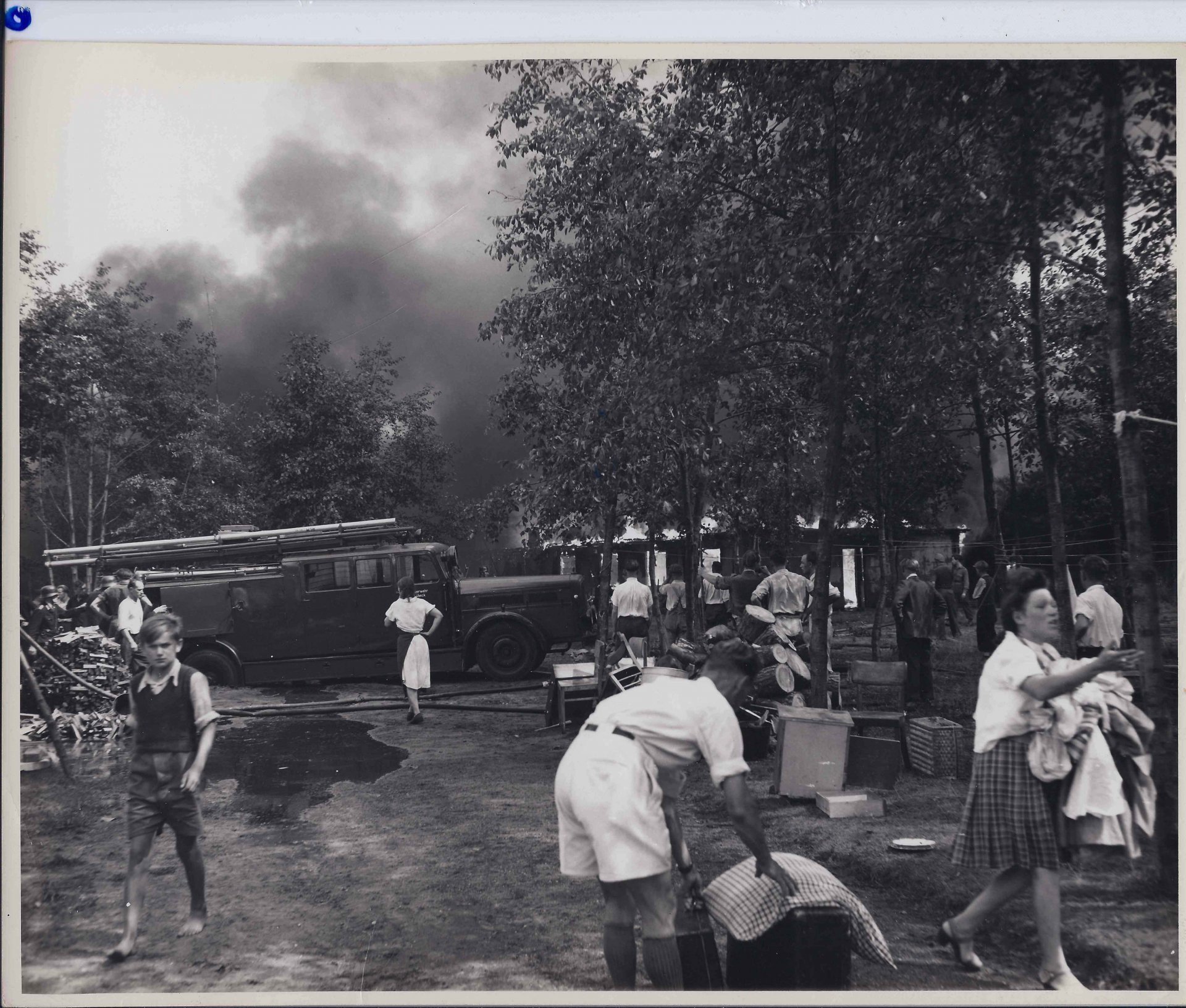 The next set of photos were taken when a fire destroyed the UNRRA administration camp at Lubeck, Germany, in 1946.  Despite the best efforts of firemen, the camp was almost entirely destroyed, and the refugees found themselves displaced once more, having quickly salvaged whatever belongings they could carry.