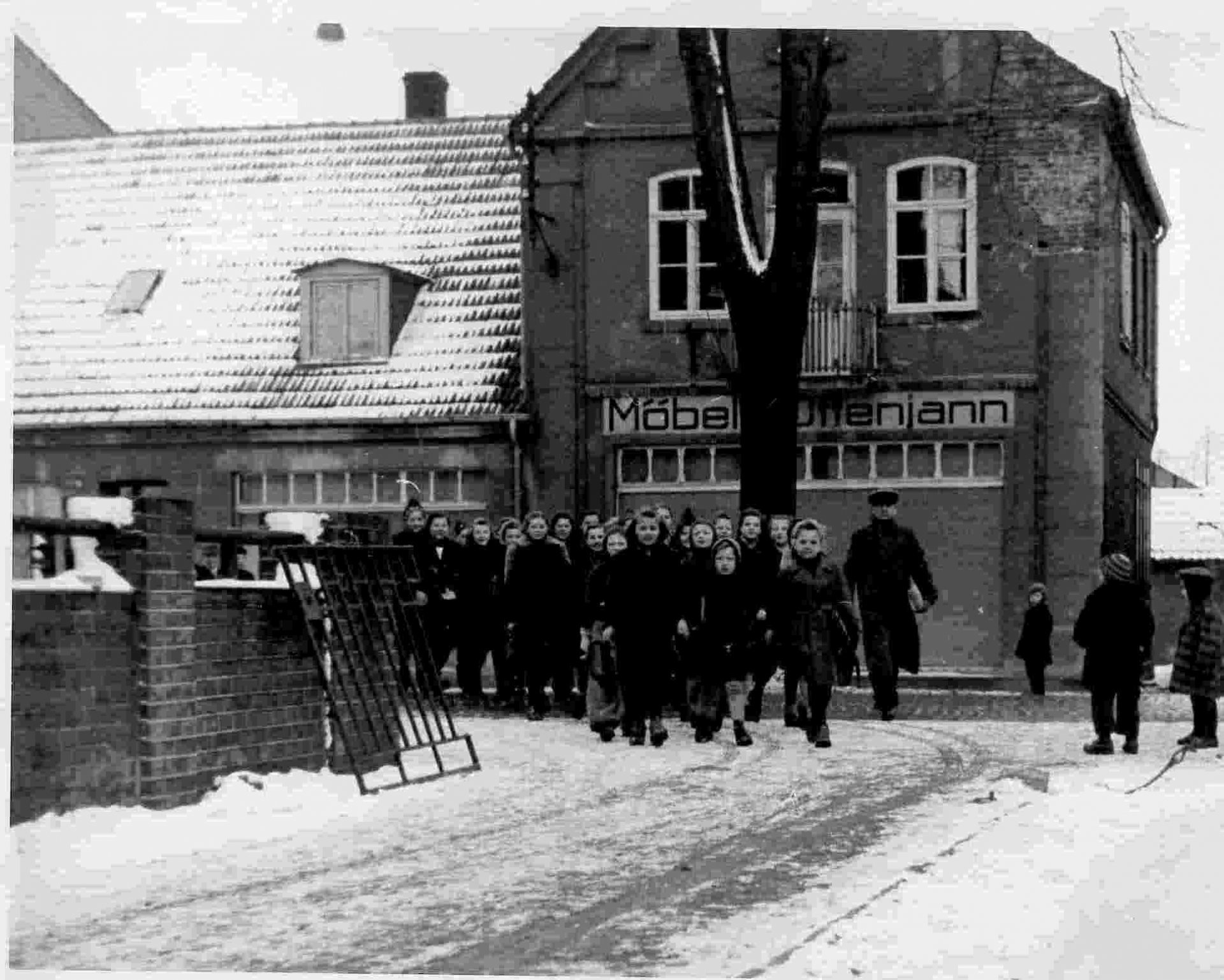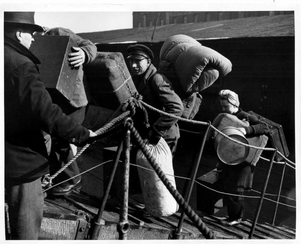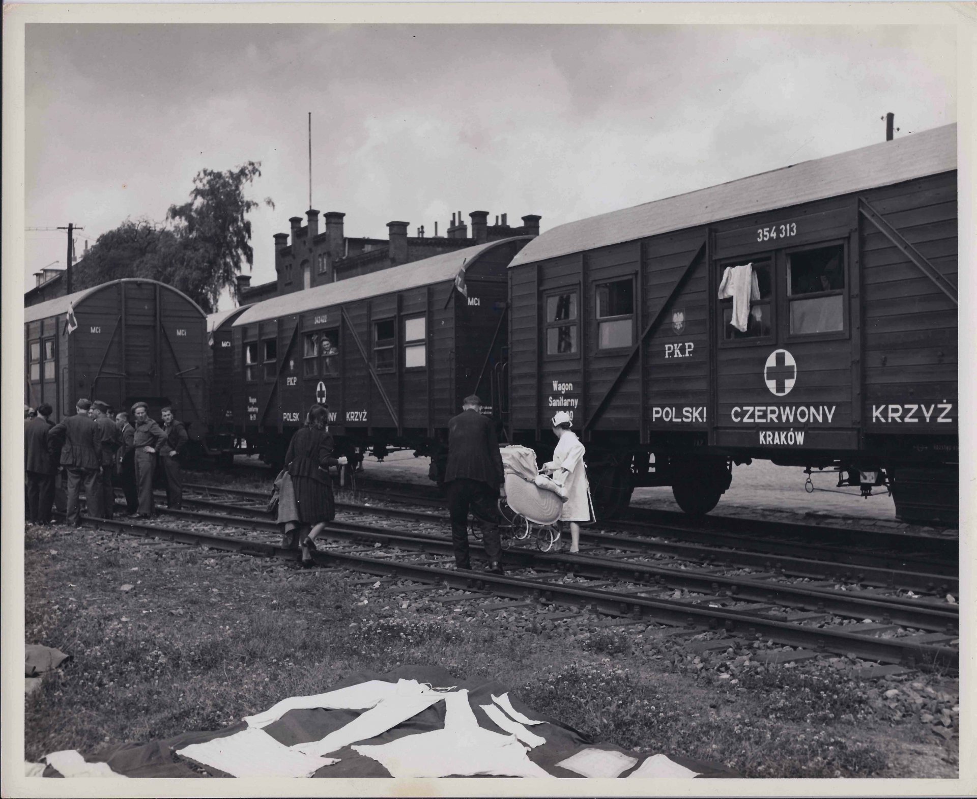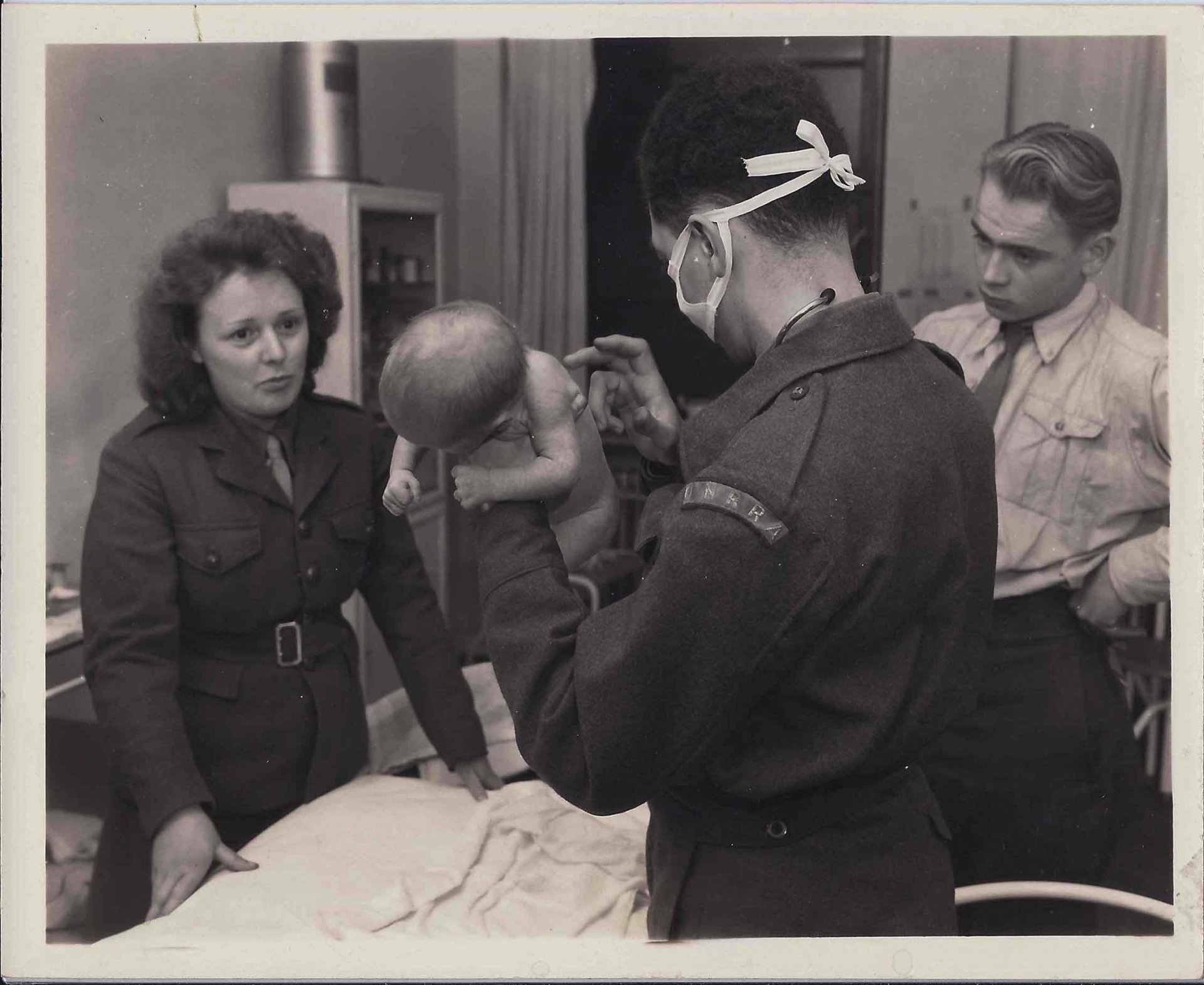 The next set of photographs shows a few images of the repatriation of 1,400 Polish displaced persons.  The first shows the embarkation at Lubeck docks, on their way to Danzig, and my father has written on the back of one of these photos "most carried all they owned".  These photos are followed by some showing the deported families travelling by road and rail, then awaiting their transit camp beside the railway track where they were offloaded, setting up temporary home for the next three days at Danzig,  The last photo in this series shows a young girl being examined in a hospital in Danzig.