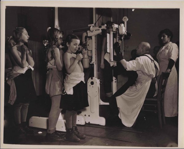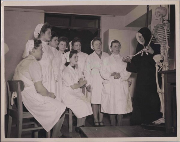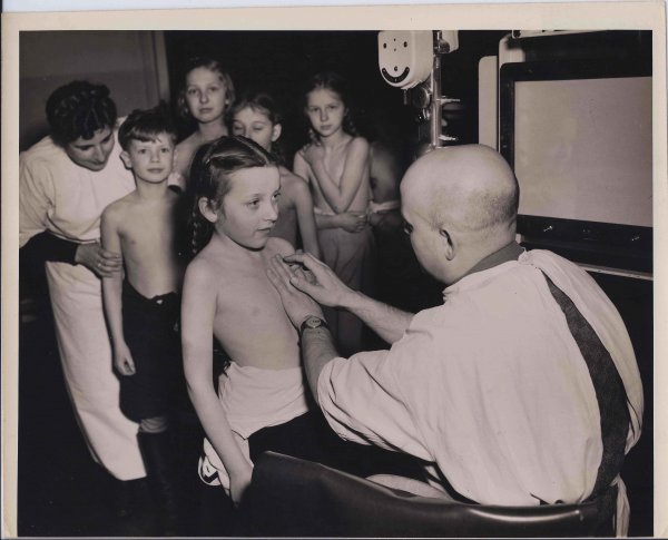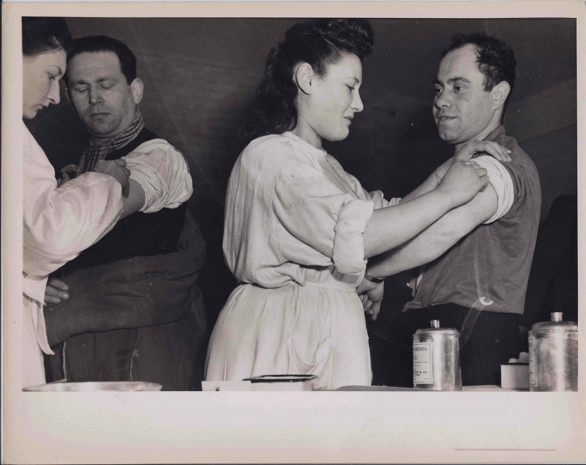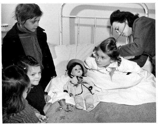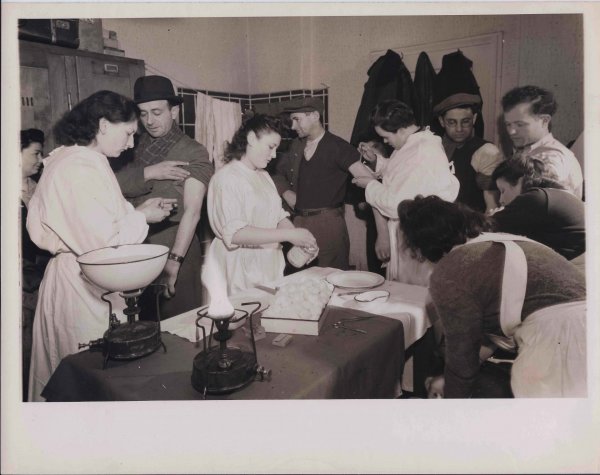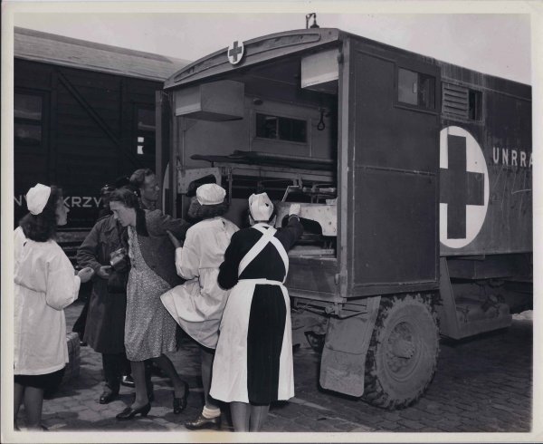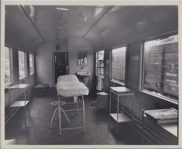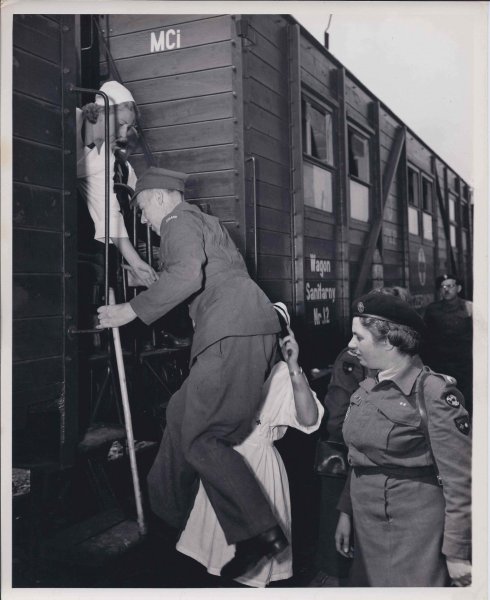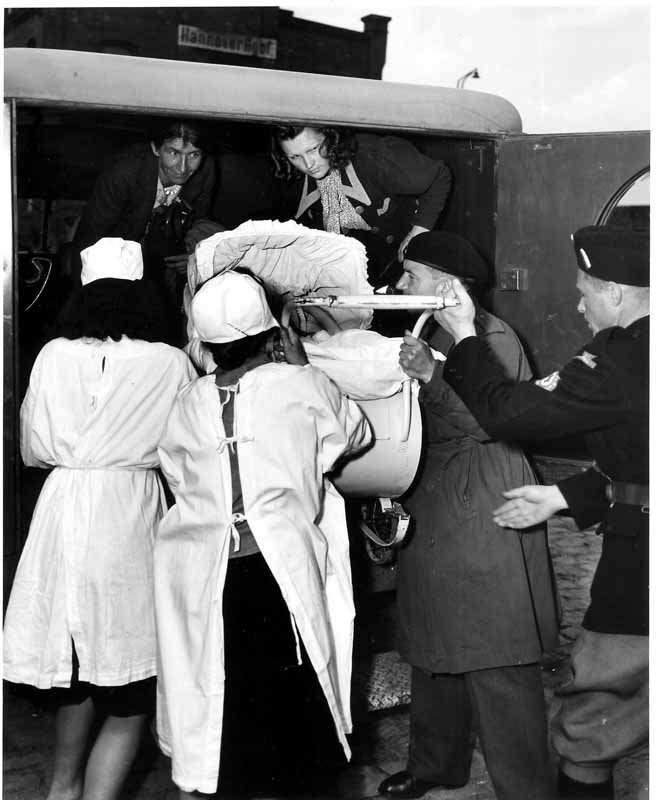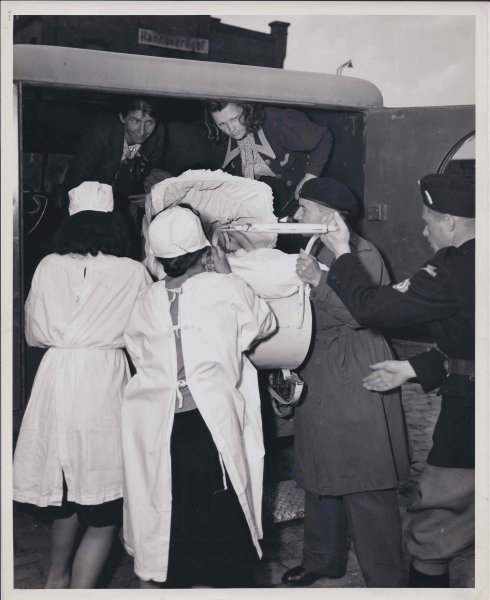 The next series of photographs come from an envelope simply marked "Medical".  Some were taken at St Marien Hospital, in Bonn, where female medical students study medicine and dentistry, and some from inside the clinic at Bruweiler.  There are also a series of photos which show casualties being transported on UNRRA vehicles to treatment centres, some of which were converted railway carriages.
