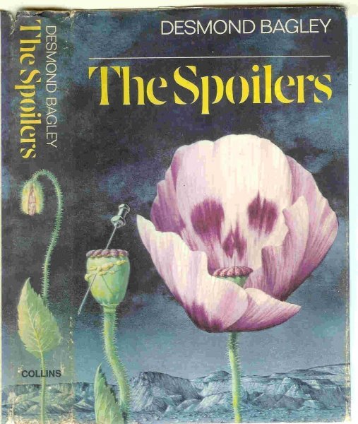 These are followed by three bookjackets for titles by Desmond Bagley. I particularly like the first one, which I thought was a very imaginative combination of a human skull and opium poppy head - Dad was rather pleased to have come up with the idea too!
