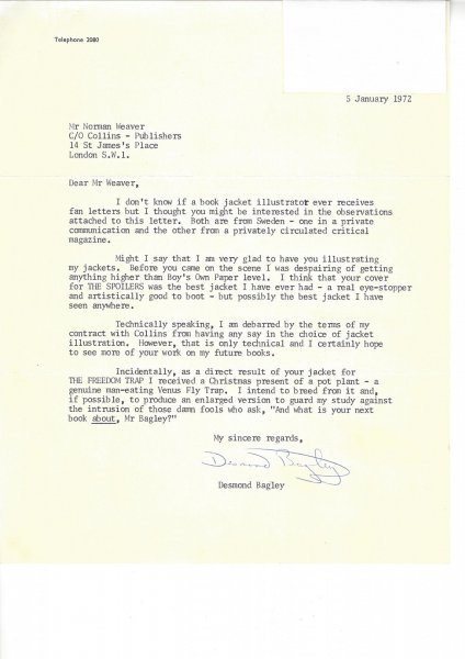 Norman Weaver designed and painted book jackets for many well-known authors, including Alistair MacLean and Desmond Bagley. Examples of some of his work are shown in this section.
